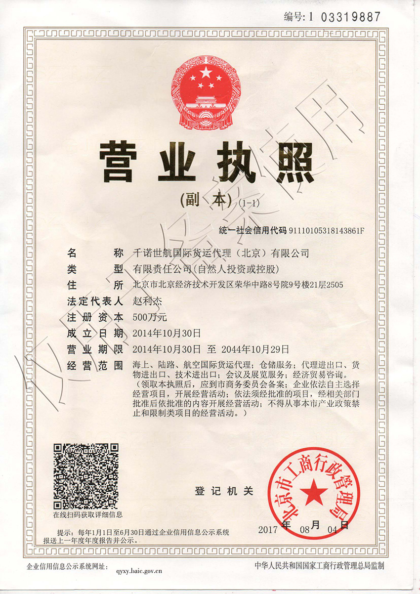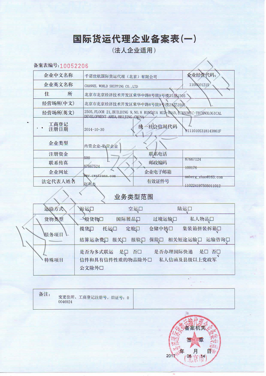 千諾世航國(guó)際貨運(yùn)企業(yè)備案表