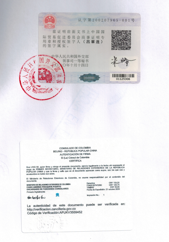 本文鏈接:專注進口清關(guān)代理、代理進口單證、ATA單證報關(guān)、臨時進出口代理服務(wù),出口代理,出口報關(guān)、國際貨運代理;請聯(lián)系我們:400-888-0577 。 | 哥倫比亞使館認證 | |